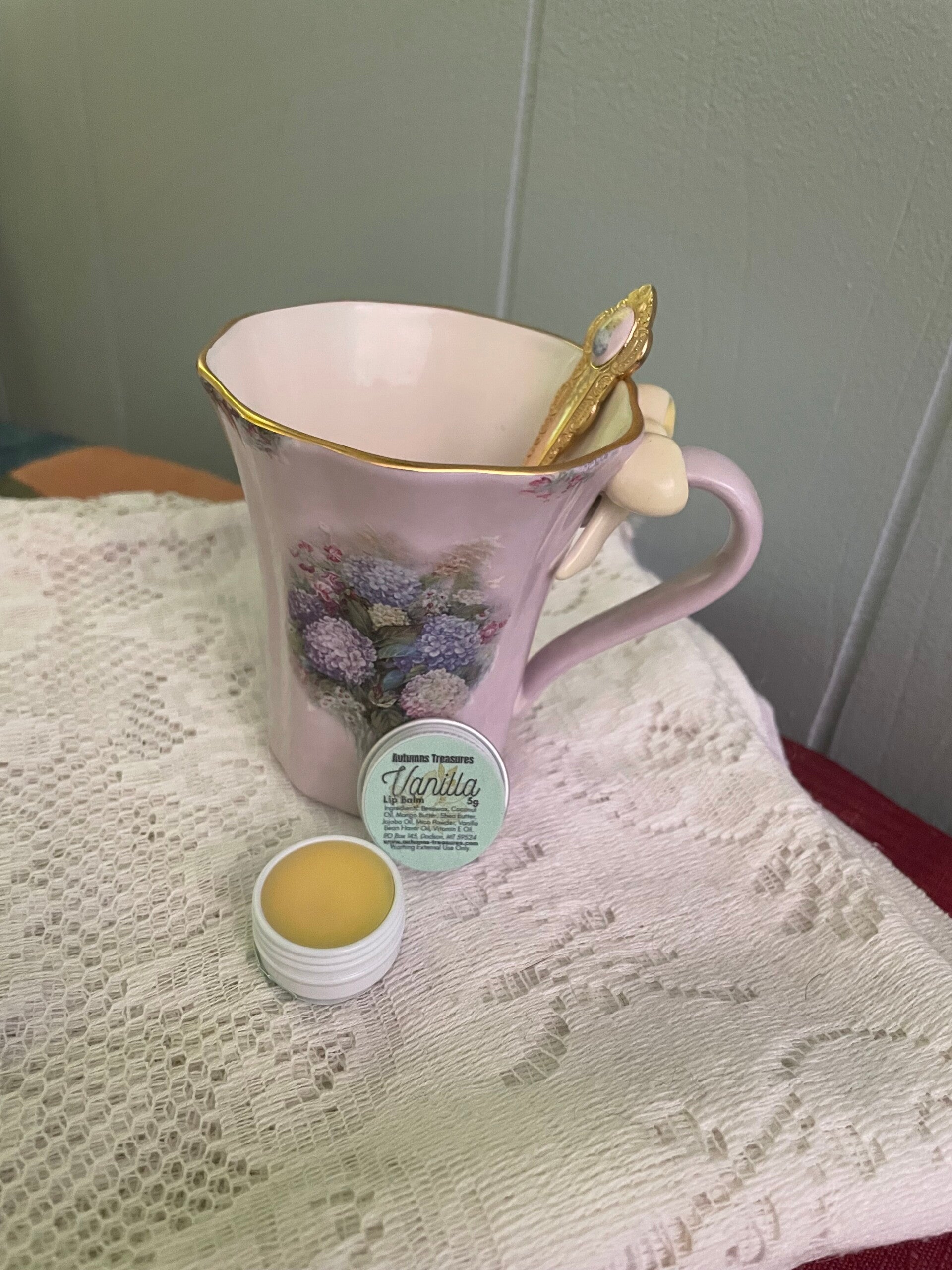 Ingredients: Beeswax, Coconut Oil, Mango Butter, Shea Butter, Jojoba Oil, Mica Powder, Vanilla Bean Flavor Oil, Vitamin E Oil.